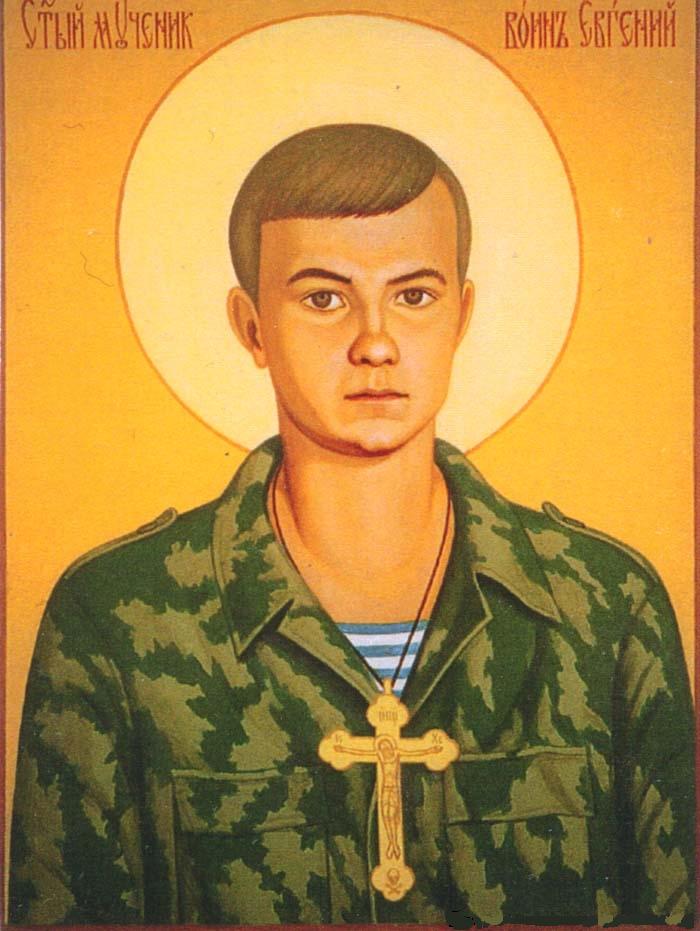 23 Мая 1996 года, под Бамутом, в свой девятнадцатый день Рождения, в Праздник Вознесения Господня, за отказ снять с себя простой нательный крестик, пограничник Евгений Родионов, захваченный в плен бандитами-боевиками, был казнен. Ему, живому, отрезали голову. Крест снять не смогли. Не посмели... В тот день воин земного воинства, защитник Церкви Воинствующей, присоединился к великому сонму Торжествующего Воинства Небесного.