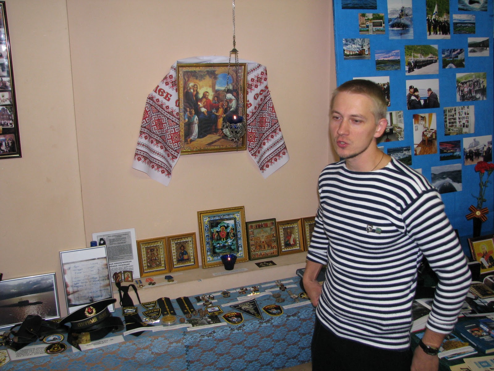 Вниманию гостей была также представлена выставка содержащая редкие книги, письма от матерей подводников, фотографии, и многое многое другое. Все это собиралось по крупицам не один год. Все желающие могли прикоснутся к трагедии, буквально, на выставке был представлен плафон фонаря аварийного освещения 9-того отсека, он был свидетелем последних минут жизни моряков-героев. На вечере был представлен фрагмент из фильма "Неугасимая лампада Курска", который был подарен нашему клубу о.Сергием (настоятелем Никольского храма-памятника пос.Видяево). Фильм снят с великой любовью и будет полезно посмотреть его каждому. Так что давайте не забывать героев, помнить о их подвиге, о их мужестве и отваге. Памяти "Курска" будем достойны...